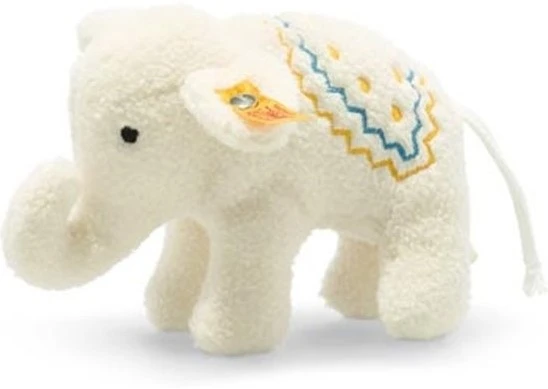 140 Jahre Freunde fürs Leben Ein Stofftier als Spielzeug? Eine Ära des Spielens… 1880 bildet das erste als Spielzeug verkaufte Elefäntle aus der Werkstatt der Margarete Steiff weltweit die Geburtsstunde von Spieltieren aus Plüsch. Der Moment begründet unzählige Kinderträume: Die Tiere werden Mittelpunkt kindlicher Fantasie. Sie laden zum Schmusen ein, fungieren als Gefährten, Trostspender und Ideengeber. Millionen Freunde fürs Leben gehen seither aus Giengen an der Brenz in alle Welt. Sie erleben persönliche Geschichten und begründen bleibende Erinnerungen. Sie werden geliebt, in Ehren gehalten, manchmal vergessen, wiedergefunden, gesammelt, vererbt. Wir begehen dieses Jubiläum 2020 mit der 140 Jahre Kollektion: Alle ihre Vertreter tragen das besondere Elefäntle-Logo „140 Jahre Steiff“. Dieses besondere Exemplar aus der Familie der klassischen Stofftiere ist speziell für die Allerkleinsten gedacht. Aus extra feinem Plüsch für die babysanfte Haut wurde das Elefäntle mit Rassel gefertigt. Eine 10 cm große Kreation in strahlendem Creme. Die hübsche Satteldecke lenkt jedes Augenmerk auf sich. In den Farben Gelb und Blau ist sie aufwendig gestickt. Der Rüssel, die Beine und auch das Elefantenschwänzchen fördern den Greifimpuls. Aber auch akustisch kann sich das niedliche Tierchen bemerkbar machen. Im Bauch wurde dafür eine Rassel eingearbeitet. So werden alle Sinne eines Babys direkt angesprochen. Das Elefäntle ist das ideale Erstspielzeug für die kleinsten Familienmitglieder. Gut für die Entwicklung der Sinnesorgane und zugleich dekorativ und begehrenswert. So wird es auch zum idealen Geschenk für Eltern zum Anlass einer Geburt. Nicht selten überdauert das erste Spielzeug dann viele Jahrzehnte und wird auch oft in Ehren gehalten.